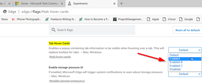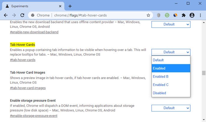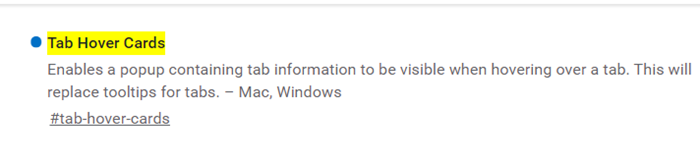 - Vaya a la entrada de tarjetas Tab Hover en la bandera experimental