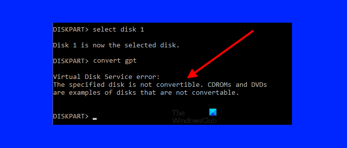 Si es usuario de Windows 11/10, probablemente sepa que puede convertir un disco MBR en uno GPT a través de la Consola de administración de discos o la utilidad Diskpart. Tanto Master Boot Record (MBR) como GUID Partition Table (GPT) son los estilos de partición de un disco duro. El estilo de partición GPT tiene varias ventajas sobre el estilo de partición MBR. Por eso ha reemplazado a MBR. Al convertir un disco MBR en uno GPT a través delParte del discoutilidad, algunos usuarios han recibido el mensaje "El disco especificado no es convertible"Error. En este artículo, veremos las causas de este error y las formas en que puede solucionar el problema.