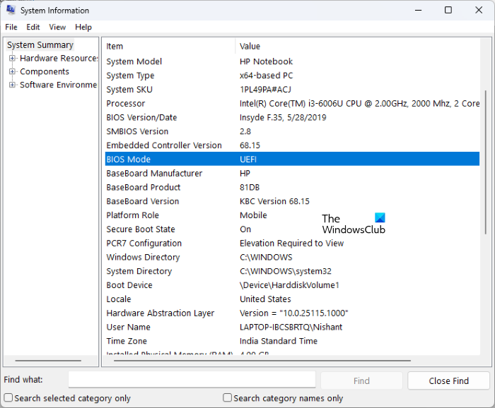 Si recibe este mensaje de error, primero verifique el modo BIOS de su sistema. Si muestra el modo heredado, conviértalo al modo UEFI. Para conocer el modo BIOS, haga clic en Búsqueda de Windows y escriba Información del sistema, luego seleccione la aplicación Información del sistema en los resultados de la búsqueda. En la aplicación Información del sistema, verá su BIOS creado en el panel derecho.