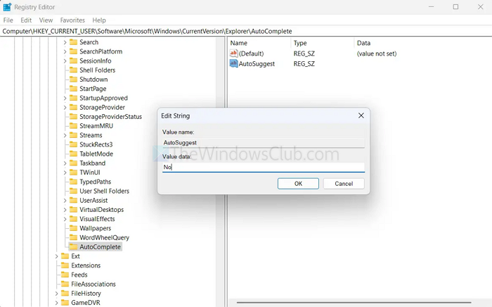 A continuación, puede intentar modificar el registro de Windows para desactivar la función AutoSuggest en el Explorador de archivos, ya que esto puede ayudar a solucionar problemas como que los menús desplegables permanecen abiertos, muestran sugerencias desactualizadas o causan otros fallos.