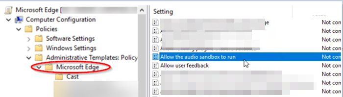 - Habilite Audio Sandbox a través de la consola de administración de políticas de grupo