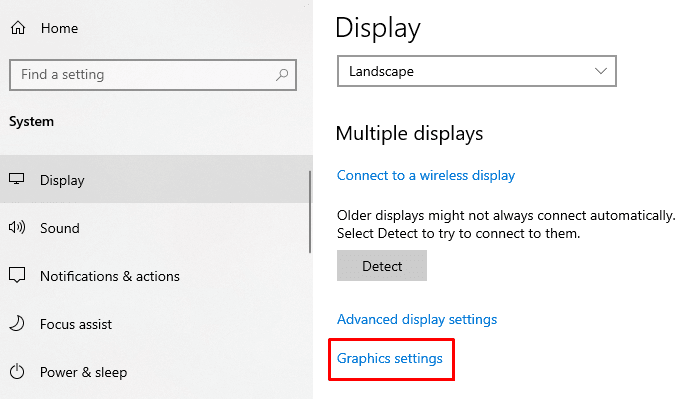 Aquí encontrarásMúltiples pantallas> haga clic en el enlace llamadoConfiguración de gráficos.