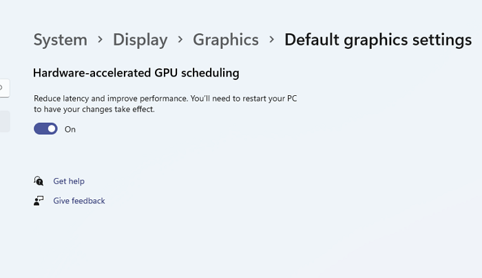 - Para habilitar la función, active el botón junto a Programación de GPU acelerada por hardware.