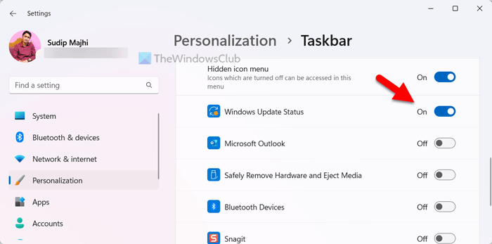 - Habilite o deshabilite el ícono de estado de actualización de Windows usando la configuración de Windows.