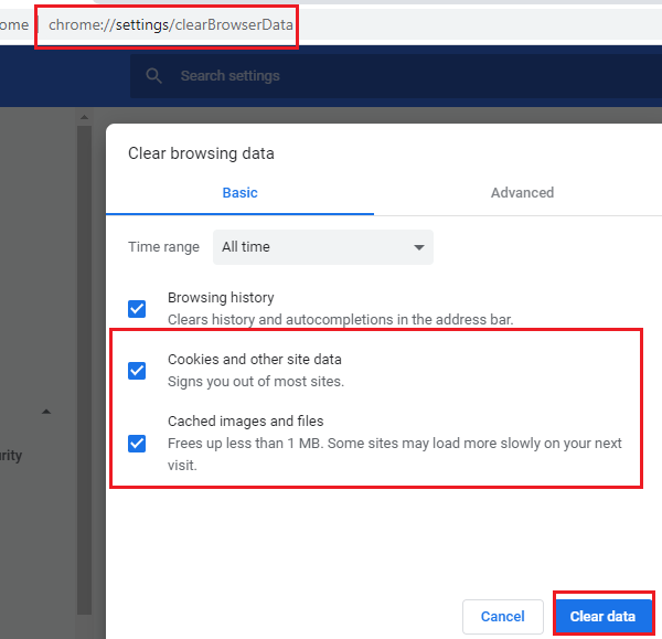 A continuación, borre las cookies y los datos de caché del navegador Chrome. Los datos de la caché pueden estar dañados, lo que provoca el error ERR_PROXY_CONNECTION_FAILED en Chrome. Así es como puedes hacerlo: