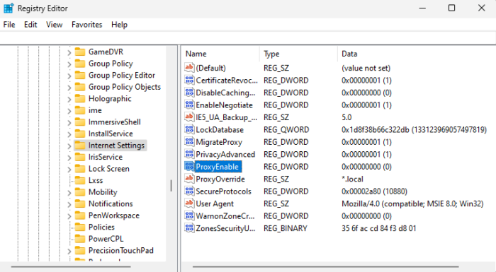 Computer\HKEY_CURRENT_USER\Software\Microsoft\Windows\CurrentVersion\Internet Settings