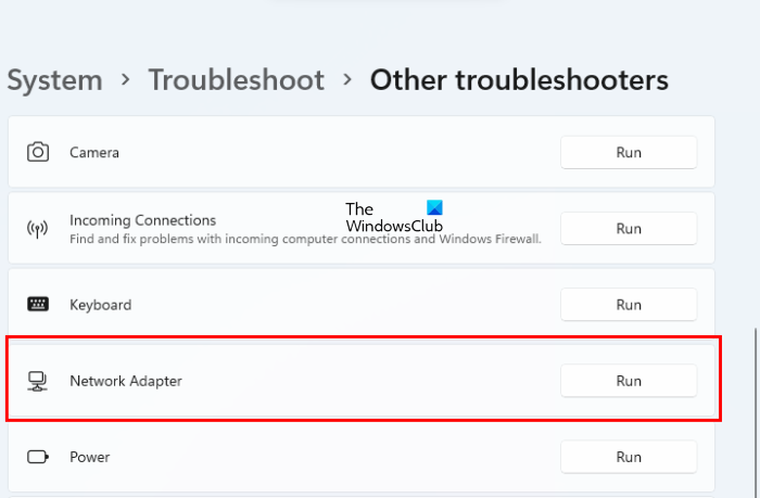 - Hacer clic enCorrercorrespondiente a laSolucionador de problemas del adaptador de red.