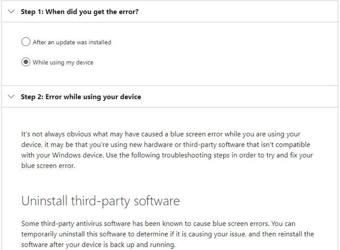 Microsoft ofrece un solucionador de problemas en línea parayen Windows 11. El solucionador de problemas funciona como un asistente para ayudar a los usuarios novatos a corregir los errores de la pantalla azul/negra. Ejecute el solucionador de problemas y siga las instrucciones detalladas paso a paso. Al saber exactamente cuándo encontró el error por primera vez, el solucionador de problemas puede ayudarlo a resolver el problema.