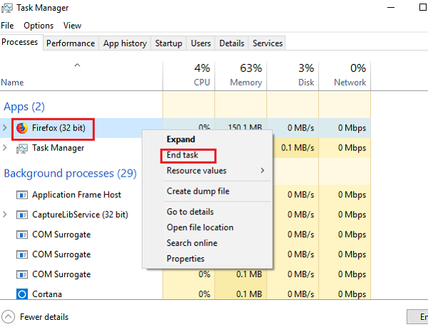 Sin embargo, es posible que esto no siempre sea útil. A veces, es posible que no podamos cerrar Firefox sin finalizar el proceso, e incluso si lo iniciamos normalmente una vez, no ayuda con la raíz del problema. Es probable que el problema vuelva a ocurrir.