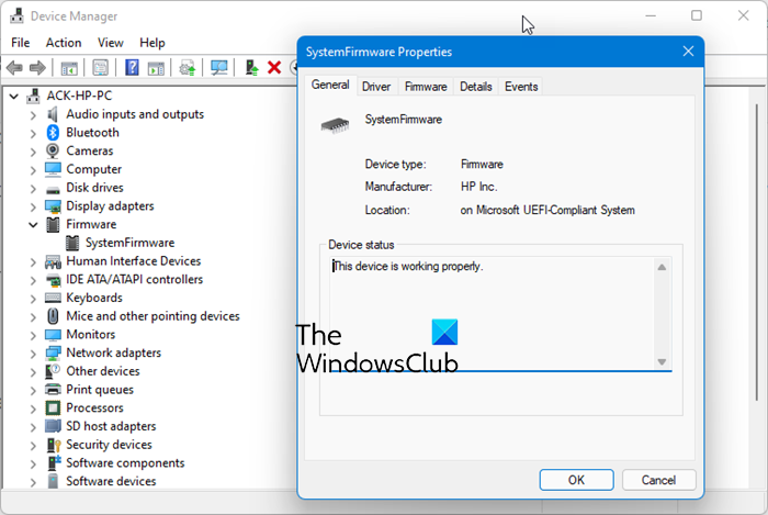 Los códigos de error disponibles después de unerror de actualización del firmwareson llamadosCódigos de retorno. Estos códigos de retorno le permiten al sistema operativo Windows saber sobre el éxito o el fracaso de la instalación de la actualización del firmware. Los usuarios pueden ver estos códigos de error en la Configuración de Windows 11/10 y en el Administrador de dispositivos. El error de actualización del firmware UEFI se clasifica en dos tipos: