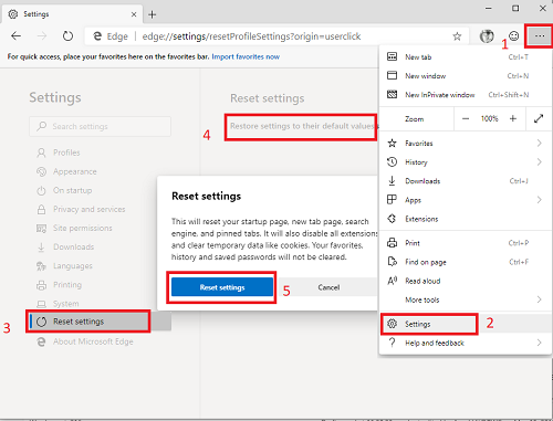 El menú y los cuadros de diálogo transparentes no son una configuración predeterminada, ya que deben haberse aplicado de una forma u otra; dado que el problema parece estar aislado para algunos usuarios de Edge. Entonces, si ha probado las sugerencias anteriores pero el problema que enfrenta actualmente persiste, puedepara restaurar el navegador a su configuración predeterminada. Para realizar esta tarea, haga lo siguiente: