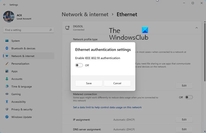 Abra Configuración de Windows > Red e Internet > Su red > Propiedades > y haga clic en el botón Editar junto a Autenticación.