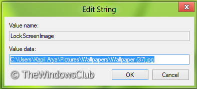 3.En el panel derecho de esta ubicación, cree una cadena denominada comoImagen de pantalla de bloqueosi no está allí. Ahora haga doble clic en él y coloque la ubicación de la imagen de la pantalla de bloqueo que desee como suDatos de valor.
