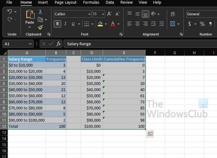 Seleccione el conjunto de datos en la hoja de cálculo de Excel.