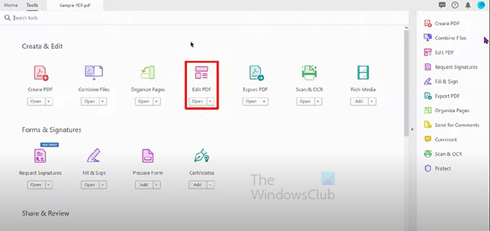 bajo elCrear y editar PDFencabezado haga clic enEditar PDF.
