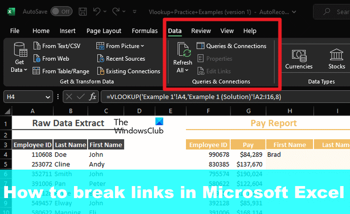Es posible que haya vinculado datos de otros libros de Excel en el mismo proyecto u otra hoja de cálculo a través de un archivo diferente. Si quiereseliminar, romper o desvincular enlaces externos en Excel, entonces esta publicación le mostrará cómo hacerlo.