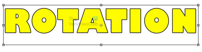 En esta imagen, el punto o rotación de la palabra se coloca en el centro del círculo.