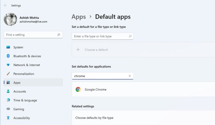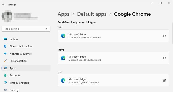 Windows 11, a diferencia de su predecesor, ofrece una forma bastante complicada de cambiar por completo el navegador predeterminado. Si bien configurar el navegador predeterminado es fácil, el resto de la parte es difícil, como cambiar la aplicación predeterminada para abrir PDF o cuando haces clic en el enlace de una aplicación, etc. En este ejemplo, estoy cambiando de Edge a Chrome.