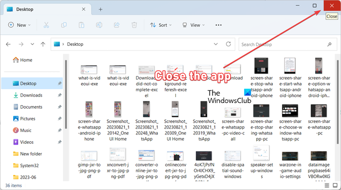 El método más utilizado y conveniente para cerrar un programa o aplicación en Windows es usar el botón X presente en la ventana de la aplicación. Puede abrir la aplicación y hacer clic en elincógnitaBotón (Cerrar) presente en la esquina superior derecha de la ventana.