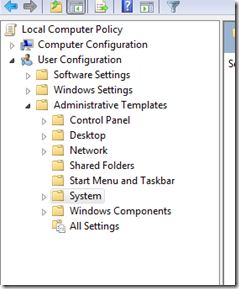 Explora hastaConfiguración de usuario > Plantillas administrativas > Sistemaen el panel izquierdo.