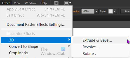 - Vaya a la barra de menú superior y haga clicEfectosentonces3DentoncesExtruir y biselar