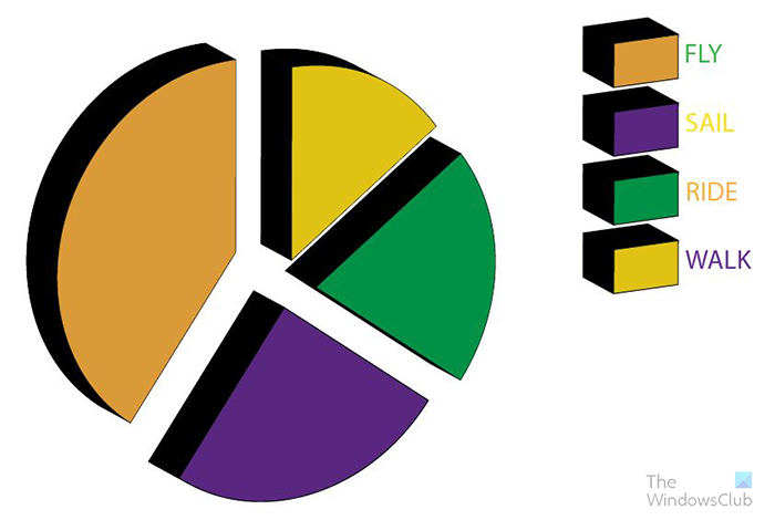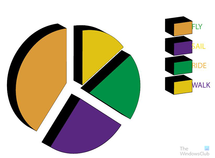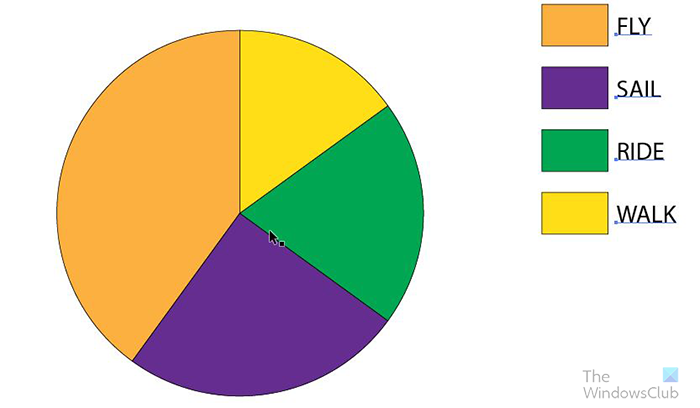 Aquí es donde agregarás el efecto 3D al gráfico circular. Hará clic en la herramienta Selección directa y luego arrastrará el gráfico circular excluyendo la leyenda y las palabras. Si lo deseas, también puedes agregar el efecto 3D a la leyenda y a las palabras. Sin embargo, en este artículo, el efecto 3D se agregará al pastel y a las muestras de color de la leyenda.