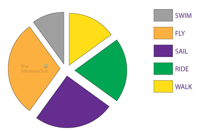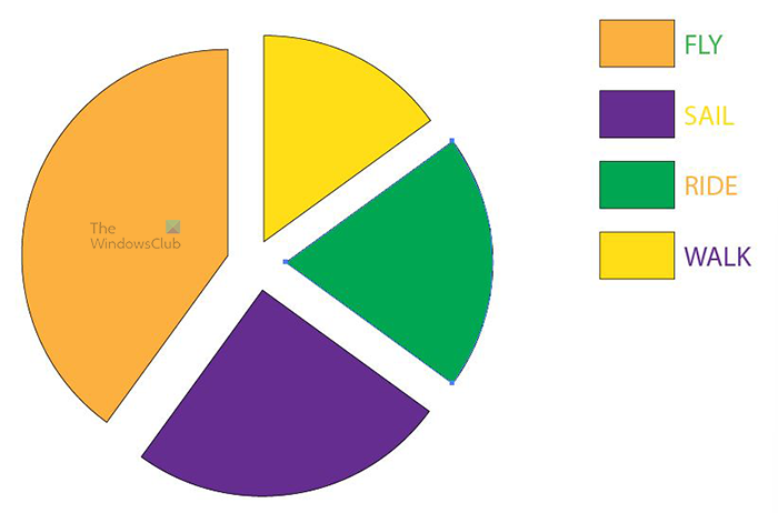 Ahora que el gráfico circular está hecho y agregado color, es hora del efecto de explosión. Para que parezca que las porciones del pastel están explotando, use la herramienta Selección directa para alejar cada porción del resto. Muévase a una distancia con la que se sienta cómodo.