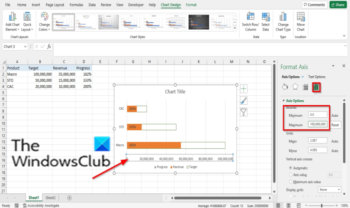 Establezca el valor objetivo máximo para su gráfico en elMáximocuadro de entrada.