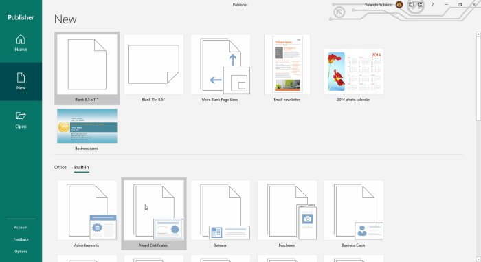 Haga clic en Integrado y luego haga clic enCertificados de premio,Esto mostrará muchas opciones para estilos de certificados.