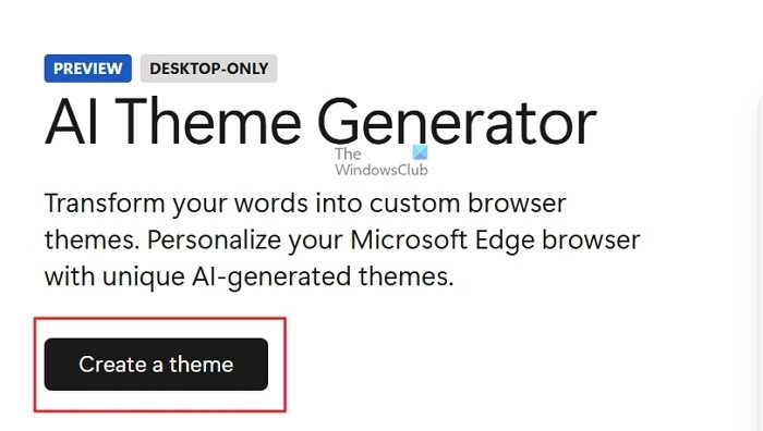 - Hacer clicaquípara abrir el generador de temas de IA para su navegador y haga clic enCrear temabotón.