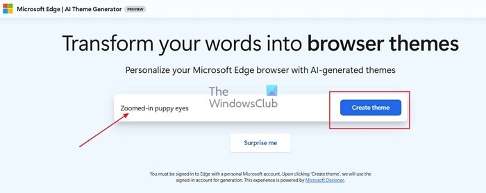 El generador de temas de IA requiere uniniciar sesión en Microsoft Edge porque genera temas del navegador utilizando la cuenta iniciada.
