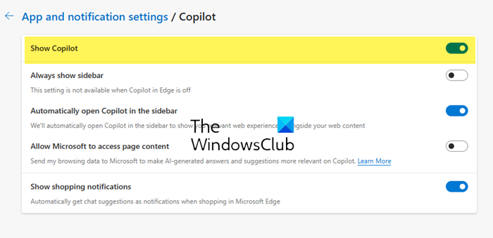 Esta publicación le mostrará cómodeshabilitar el botón Copilot en Microsoft Edge. La última versión de Microsoft Edge incluye nuevas funciones y mejoras, incluido Edge Copilot. Esta función integra chat con tecnología de inteligencia artificial y creación de contenido en el navegador. Sin embargo, es posible que esta función no entusiasme a algunos usuarios, que tal vez quieran desactivarla.