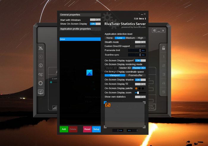 También puedes personalizar cómo se ven las estadísticas en pantalla. Para hacer eso, haga clic en el ícono del Servidor de estadísticas de RivaTuner entre los íconos de la bandeja del sistema para abrirlo. Una vez que lo hayas abierto, podrás ver diferentes opciones para personalizar el aspecto de las Estadísticas en pantalla.