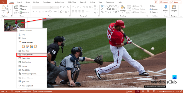 - Haga clic derecho en la diapositiva y seleccione Duplicar.