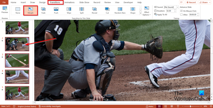ElFunción de transformación en Microsoft PowerPointpermite a los usuarios animar un movimiento suave de una diapositiva a otra. Los usuarios pueden utilizar la función Morph para realizar animaciones, transiciones y movimientos de objetos como texto, formas, imágenes, gráficos SmartArt y WordArt en las diapositivas de su presentación. Cuando se trata de gráficos, no se pueden transformar.