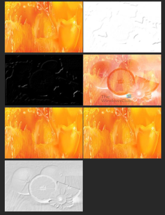 La obra de arte se compone de un total de siete capas. La imagen de arriba muestra las capas que se encuentran en la obra de arte.