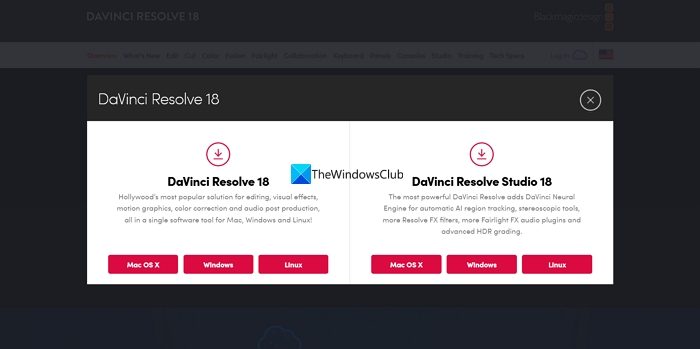- Haga clic en DaVinci Resolve Descargar gratis ahora