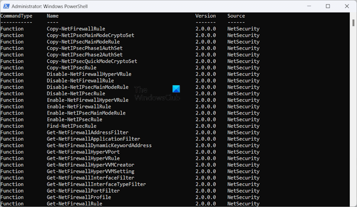 Para administrar reglas en Windows Firewall a través de PowerShell, debe usar elRegla NetFirewallcmdlet que forma parte del módulo NetSecurity. Puede ver todos los cmdlets de NetSecurity ejecutando el siguiente comando en Windows PowerShell: