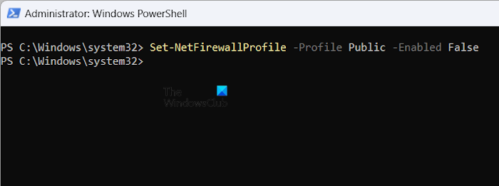 Set-NetFirewallProfile -Profile Public -Enabled False