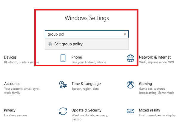- Escriba la política de grupo y GPE deberían estar disponibles