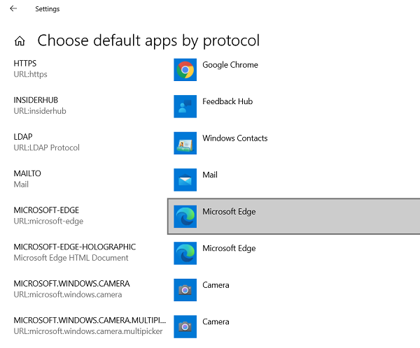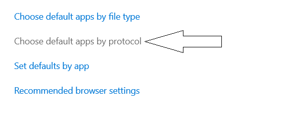 Desplácese hasta el final de la página y seleccione Elegir aplicaciones predeterminadas por protocolo.