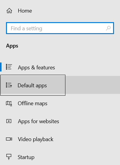 Seleccione la sección 'Aplicaciones' y haga clic en Aplicaciones predeterminadas.