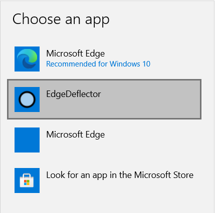 Luego se le darán algunas opciones para elegir. Seleccione EdgeDeflector y cierre la ventana.