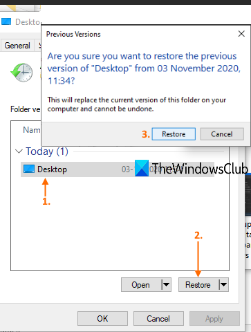 - Para aquellos que usan Windows 11, seleccioneMostrar más opcionesdespués de hacer clic derecho, luego haga clic enRestaurar versión anterior.
