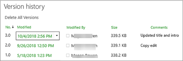 Tenga en cuenta que SharePoint no elimina la versión anterior que acaba de elegir restaurar. En cambio, crea una copia y la convierte en la última versión.