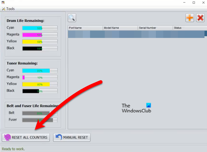 Para restablecer las impresoras OKI, necesitamos usar elHerramienta de configuración del menú de la impresoraque viene con tu impresora. Entonces, abra la aplicación y conecte su impresora, luego haga clic en RESTABLECER TODOS LOS CONTADORES. Finalmente, siga las instrucciones que aparecen en pantalla para restablecer su impresora. Si desea restablecer manualmente la impresora, seleccione RESTABLECIMIENTO MANUAL > PREDETERMINADO DE FÁBRICA. Y estarás listo para partir.
