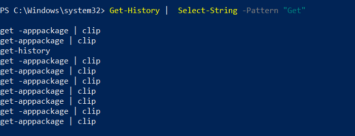 Get-History | Export-Clixml "D:\The Windows Club\New folder\PowerShell Command History.xml"