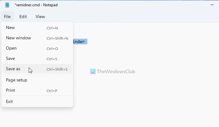 Para comenzar, debe abrir el Bloc de notas e ingresar el texto del recordatorio en el siguiente formato: