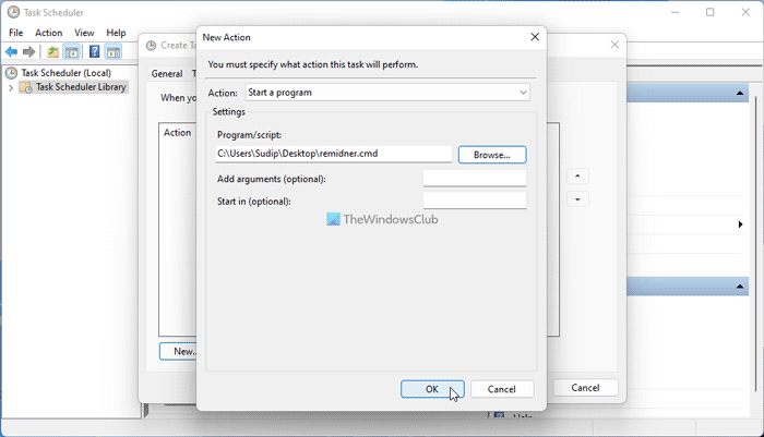 Para configurar un recordatorio recurrente en Windows 11 o Windows 10, puede utilizar la ayuda del símbolo del sistema, el Bloc de notas y el Programador de tareas. Lo mejor es que no necesitas depender de programas de terceros. En su lugar, puede utilizar estas utilidades integradas para configurar el recordatorio recurrente en su computadora.