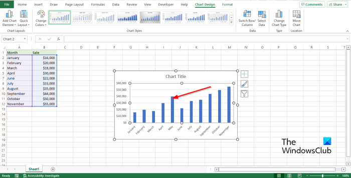 - Seleccione el gráfico y luego haga clic en la pestaña Diseño de gráfico.